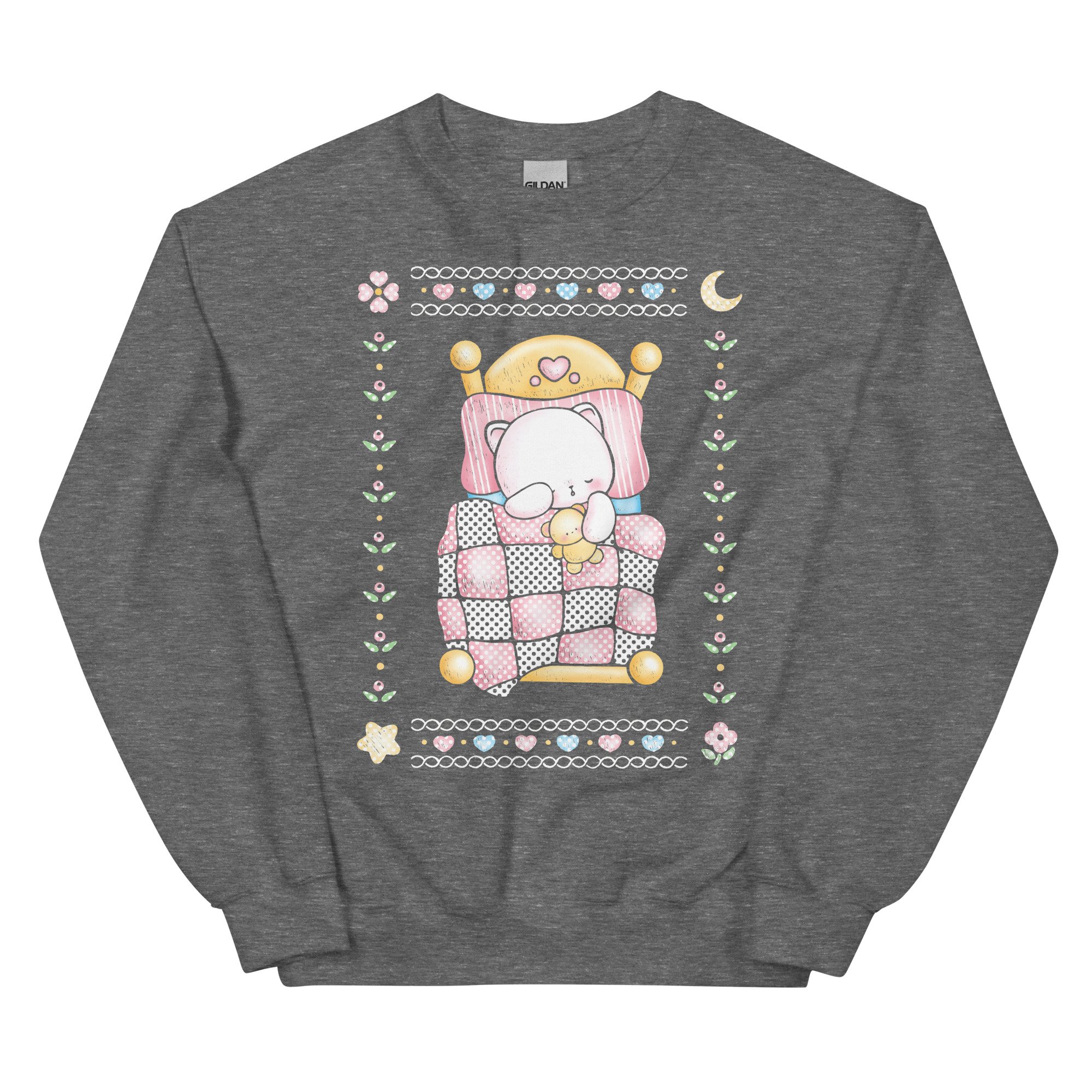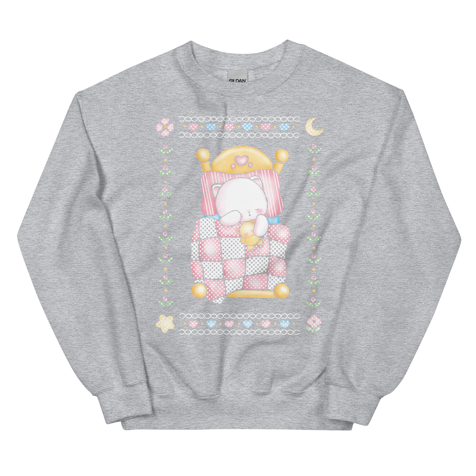 A cute and cozy sweatshirt inspired by vintage grandma sweaters ❤︎ So soft and comfy you’ll want to take a nap along with kitty!